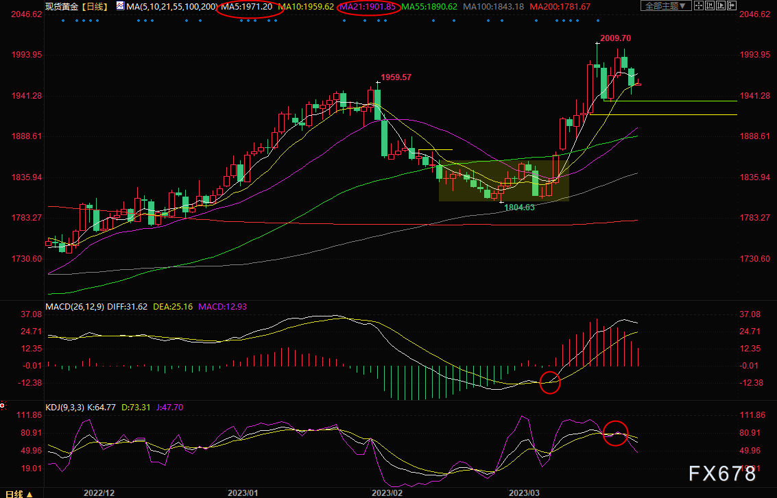汇通财经APP讯——周二(3月28日)亚洲时段,现货黄金反弹受阻,目前交投于1958.71美元/盎司附近,虽然美元走弱一度给金价提供支撑,但因为第一公民银行收购硅谷银行资产交易尘埃落定,欧美银行股大涨,打压市场对黄金的避险需求。而且金价多次上冲2000关口受阻后回落,技术面见顶风险有所增加,投资者需要提防金价短线的进一步下行风险。