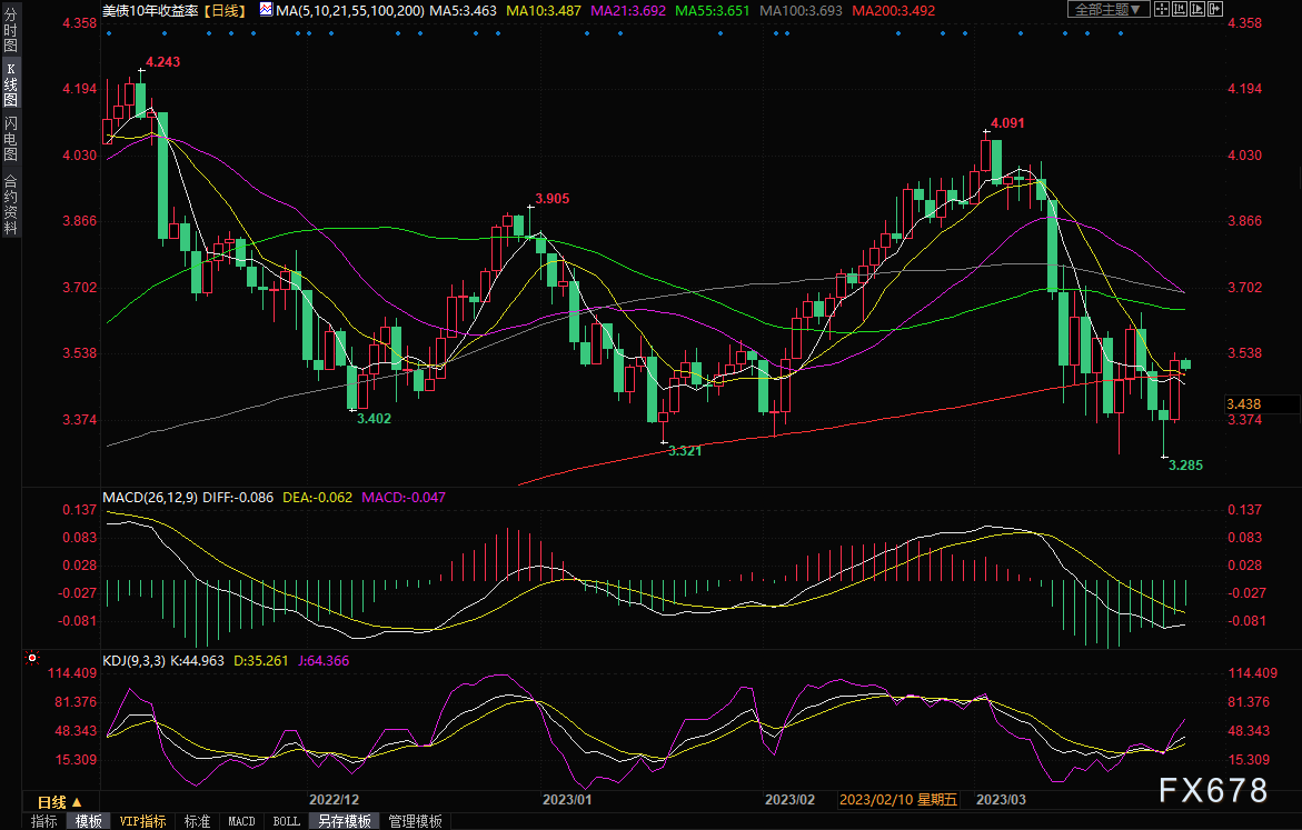 10年期国债收益率周一上涨15个基点,至3.526%。从上周五达到的六个月低点3.285%上升,但仍低于10月21日的15年高点4.338%。两年期国债收益率周一上升23个基点,至4.008%,高于上周五达到的六个月低点3.555%,但低于3月8日达到的近16年高点5.084%。