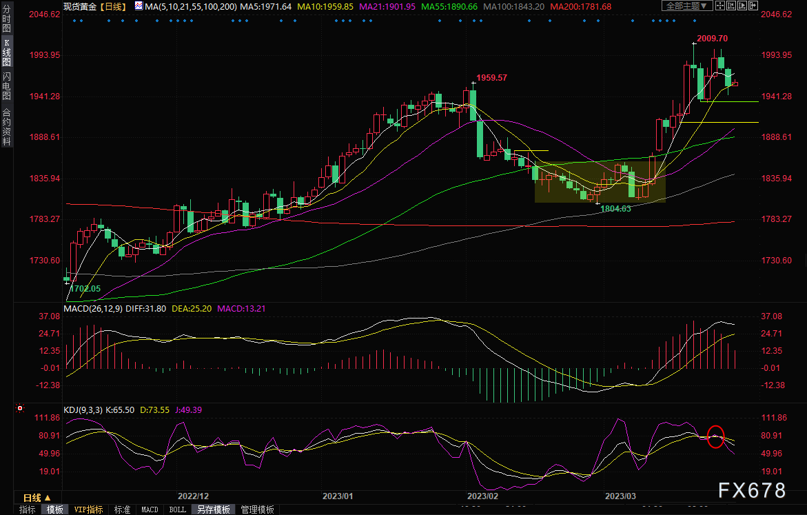 整体来看,市场对银行业的担忧情绪已经显著降温,这极大的削弱了黄金的上涨动能,尽管美元也受到拖累,对全球经济衰退的担忧情绪仍未完全消散,但美债收益率和美股上涨,令金价承压,随着金价多次上冲2000关口受阻,多头士气也明显受挫,投资者需要提防金价震荡筑顶的可能性,短线留意上周低点1934.17附近支撑,如果失守该支撑,则增加后市看空信号;上方留意5日均线1971.60附近阻力。