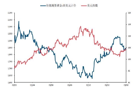 2月初以来,贵金属市场延续高位回落的疲软走势,月初联储利率决议再贵加息25个基点符合市场预期,但是随着美国非农数据、通胀数据以及贸易数据的相继公布,市场发现美国经金济的依旧表现较为强劲,对于远期的利率高点预期不断增强,从最新的利率掉期市场来看,目前市场已经开始交易利率终点将到达5.3%以上,在这种不断强化的预期引导下,美元指数以及美债利率均持续反弹,而贵金属则不断承压,拾级而下。