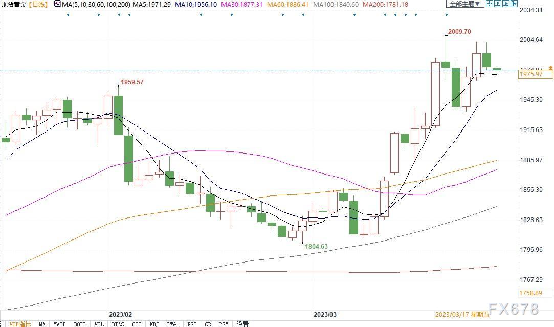 现货黄金日线图北京时间3月27日11:11,现货黄金报1975.92美元/盎司