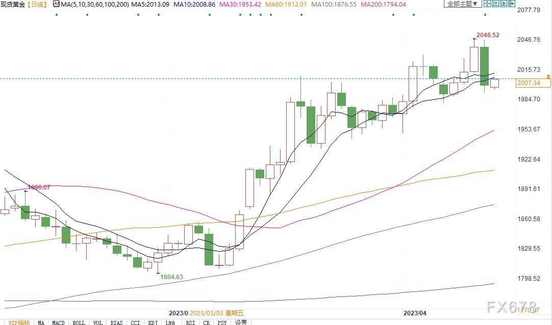 现货黄金日线图北京时间4月17日10:34,现货黄金报2006.74美元/盎司