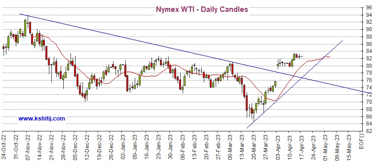 WTI原油期货看起来也在区间内波动,可能在一段时间内在85/84美元/桶和80美元/桶之间交易。