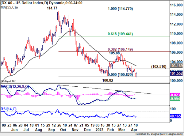 上周,美元指数一度跌至2023年低点100.78,但在100.82找到大量支撑,最终回升至101.55。从技术角度来看,基本情况表明,美元指数从100.82开始的价格走势正在演变成三浪修正模式。因此,目前预计不会持续跌破100.82,反弹是必然的。