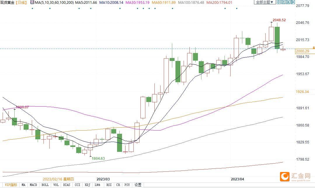 SIA财富管理首席市场策略师Colin Cieszynski表示:“黄金最近涨势强劲,但涨势动能似乎略有放缓,似乎将出现技术性回调,可能支撑位在2000美元或1960美元附近。”