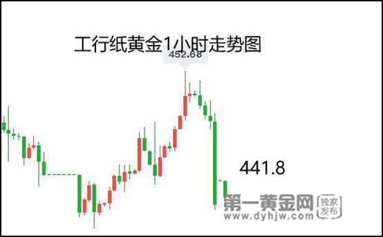 上周尾盘,纸黄金从450关口上方大跌,最低跌至440关口,截至本周一早间发稿,工行纸黄金报价在441.8元/克。