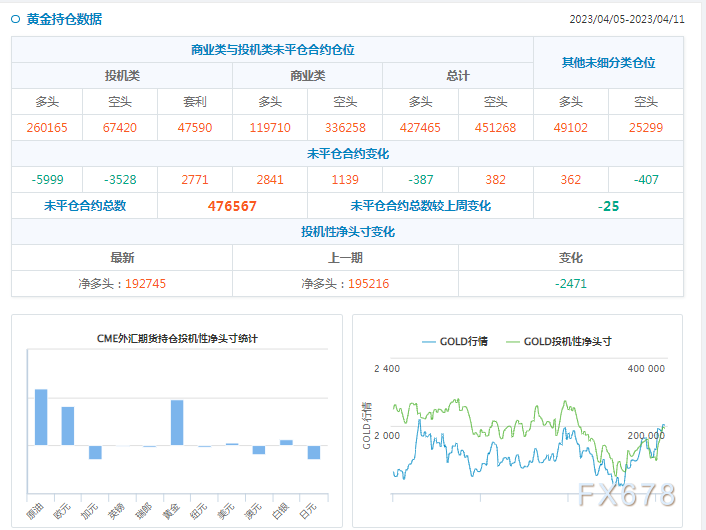 贵金属方面:截至4月11日当周,COMEX黄金投机者将净多头头寸减少7422手,至137563手;白银投机者将净多头头寸增加262手,至19231手;铜投机者将净多头头寸增加1864手,至5982手。
