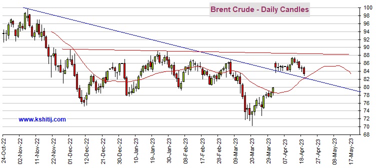 原油方面,Kshitij咨询服务团队表示,布伦特原油期货已跌破83.50-88美元/桶区间。布油价格可能测试82-80美元/桶,然后料展开反弹。