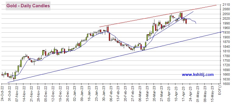 Kshitij咨询服务团队在文章中写道,黄金期货可能在2020-1960美元/盎司之间交易,持有看空观点,期金料跌向区间低端。