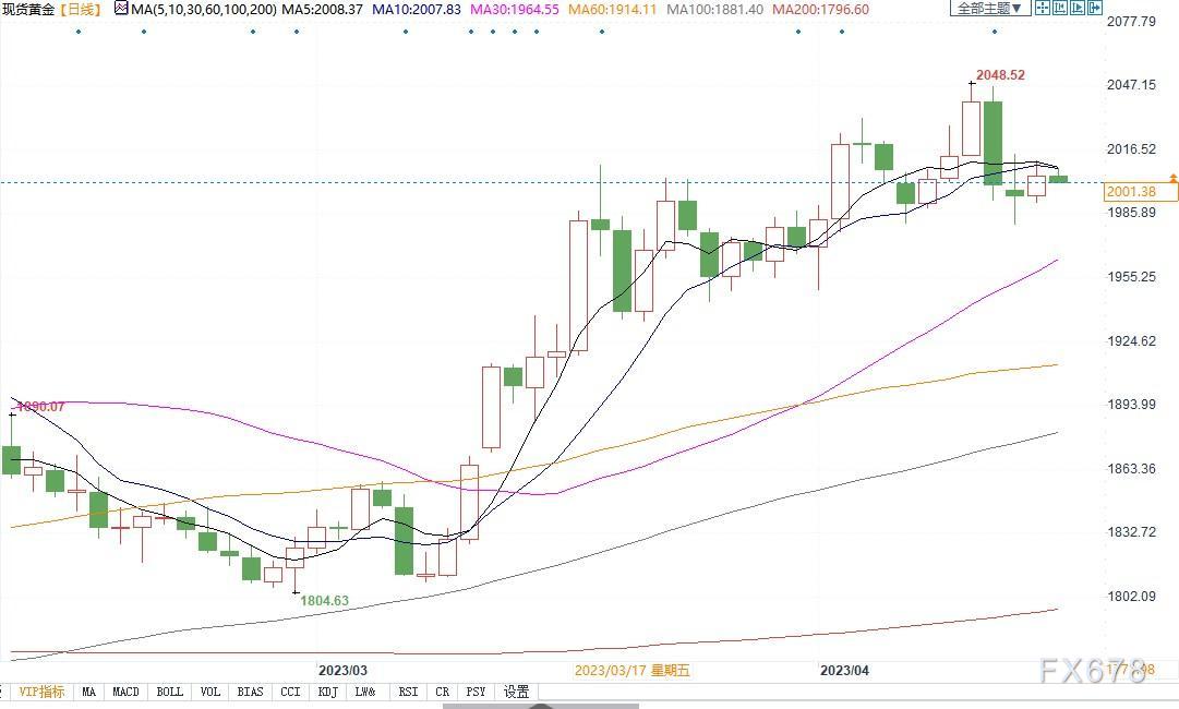 现货黄金日线图北京时间4月19日14:04,现货黄金报2001.00美元/盎司
