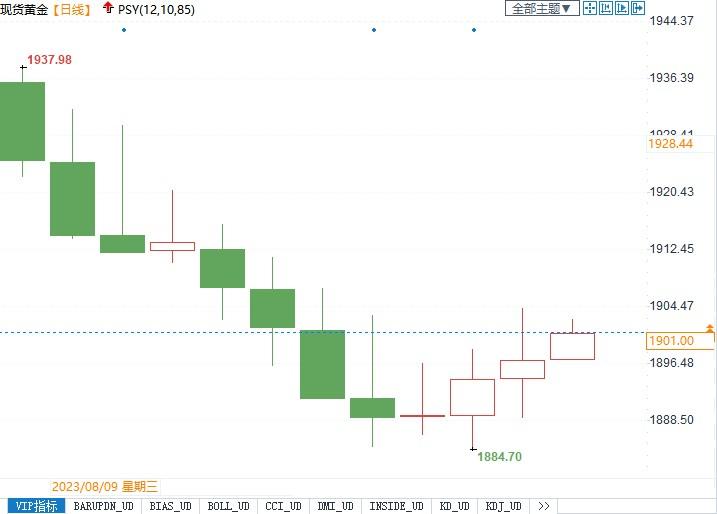 北京时间8月23日10:54,现货黄金报1900.75美元/盎司