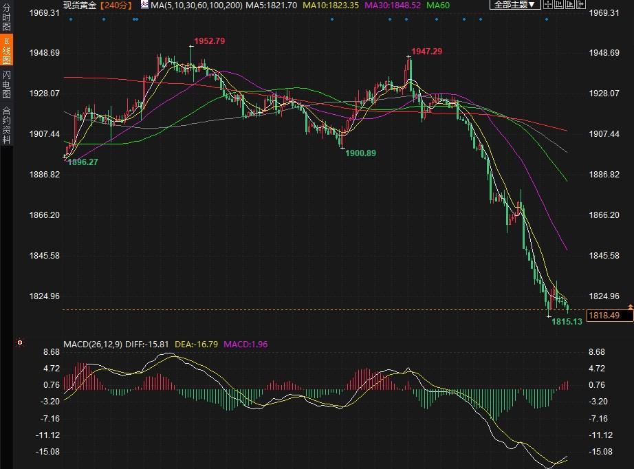 (现货黄金4小时图 )
