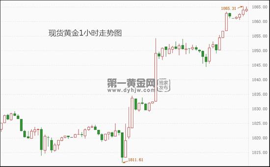 现货黄金周一受到避险情绪的刺激,反弹回1860美元之上,本交易日开盘后,金价延续涨幅,不过从1小时走势图来看,红色动能柱微弱,金价涨势放缓。