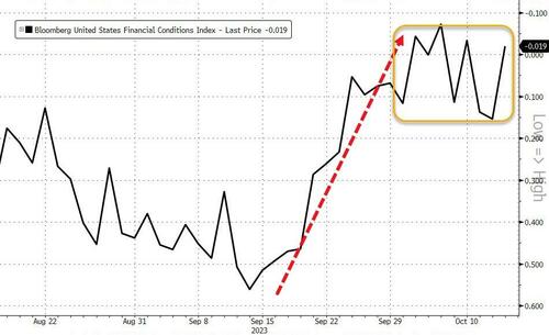 可以看到,在9月中旬开始大幅收紧后,上周美国金融状况基本持平……