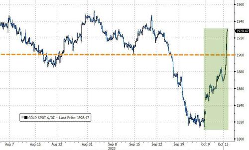 大宗商品市场的动向,无疑最能反映出市场深深的“危机感”。在以色列遭遇哈马斯袭击后,黄金上周飙升超过5%,重新回到了1900美元/盎司关口以上——这是自3月份以来的最大单周涨幅。