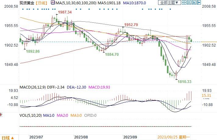 周一(10月16日)进入欧市盘中,全球市场仍处于紧张状态,巴以局势升级而没有明显的解决方案,黄金在上周五暴涨后出现获利回吐小幅回落,但仍守住1900美元关口之上。市场本周继续追踪中东局势,同时关注美国的货币政策。