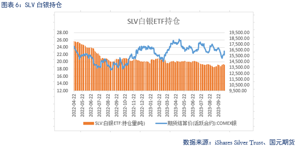 截止10月13日当周,SPDR持仓量为862.37吨,与前一周相比减少3.48吨,目前基金持仓基本维持稳定。SLV持仓量为13971.78吨,与前一周相比59.86吨,目前SLV持仓处于相对低位。