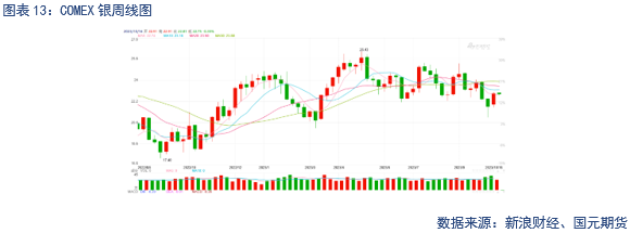 白银价格上周大幅上涨。白银库存减少,避险情绪助推贵金属上涨,但白银本身避险属性相较黄金偏弱,其走势相对黄金较弱。