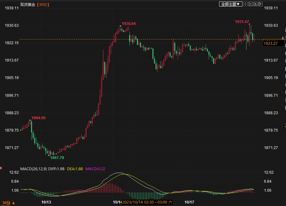 (现货黄金30分钟走势图)