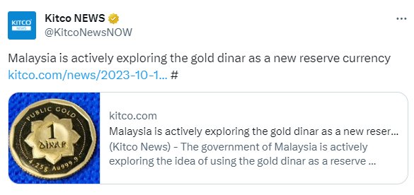 Kitco News指出,林吉特和人民币分别指的是马来西亚和中国的本国货币,安华的言论表明,他承认像马来西亚这样的国家已经从美元转向其他货币和支付工具。