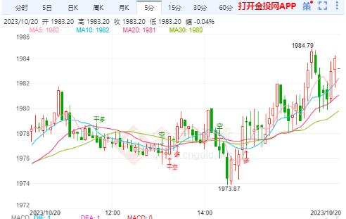 周一(10月23日)亚市盘中,现货黄金短线再度大幅下挫,目前交投于1969.85美元/盎司,日内大跌近10美元。今日亚市开盘后金价曾跌破1965美元/盎司。在美国消费者坚定的支持下,全球最大经济体第三季度可能以近两年来最快的速度扩张,这对正在讨论是否需要进一步收紧政策的美联储官员来说是一个挑战。