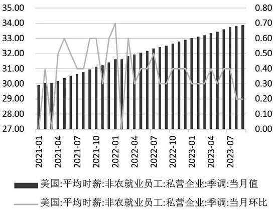 美国劳动力市场维持强劲,也为美联储货币政策转向宽松带来阻碍。10月6日美国劳工部最新发布的9月非农就业新增数据达到33.6万人,就业市场的强劲超出市场预期,又为市场带来了美联储继续加息的担忧,此外,失业率为3.8%,环比持平。薪资水平方面同样维持上涨趋势,美国私营企业非农员工时薪自疫情后一直保持增长,9月时薪环比上涨0.2%,至33.88美元,显示通胀仍存上行风险。周度数据方面,10月6日发布的当周初请失业金人数为20.9万人,周环比持平。美国劳动力市场保持强劲的原因主要是疫情期间餐饮等服务业空缺岗位较多,疫情后行业逐渐恢复,劳动力需求较大。总体来说,当前强劲的劳动力市场情况可能加剧美联储对经济重新过热、通胀再次上行的担忧,使其对货币政策转向更加谨慎。