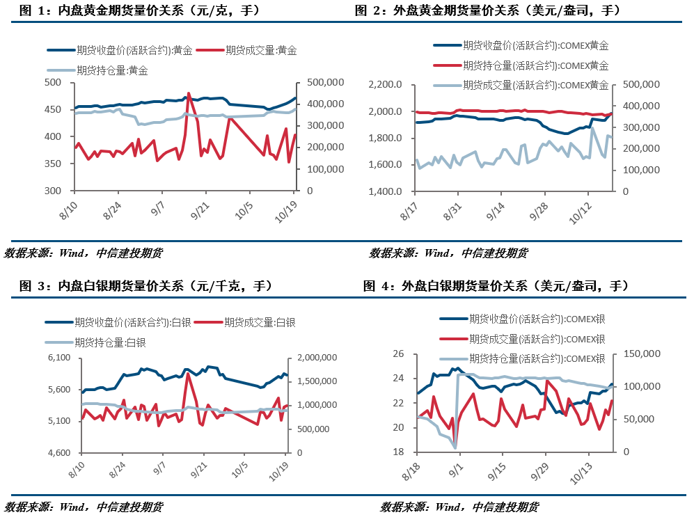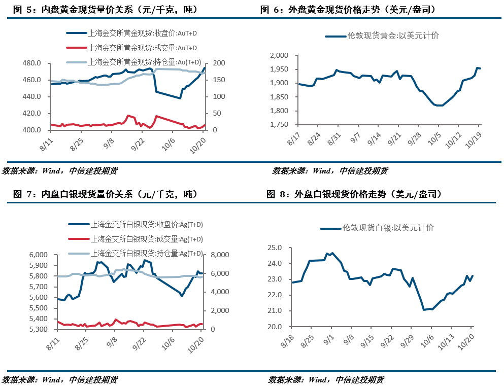 巴以冲突持续,油价持续上扬,市场避险情绪高涨。美国经济表现具有韧性,美联储官员近期表态鸽鹰参半,但在美债收益率持续上扬之下,美联储加息必要性显著降低。欧洲经济数据稍有回暖,欧央行对进一步加息表现犹疑。总的来说,市场进入避险模式,而美国可能卷入地缘政治冲突的可能性使得美债遭到抛售,同时美联储加息必要性也在降低,短期贵金属或继续偏强运行,后市仍需持续关注中东局势发展。
