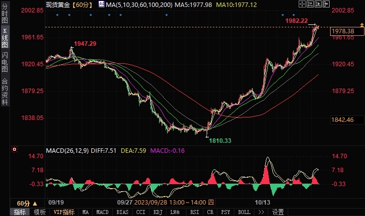 周五(10月20日)欧市早盘,现货黄金维持日内升势,目前金价交投在1980美元/盎司附近。本文对日内黄金技术前景进行分析。