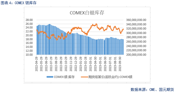 芝加哥商业交易所公布报告显示,10月20日COMEX金库存1983.09万盎司,较前一周减少48.54万盎司;10月20日COMEX银库存为2.72亿盎司,较前一周减少122.86万盎司。