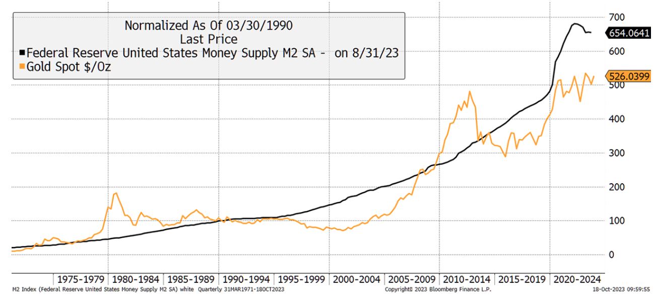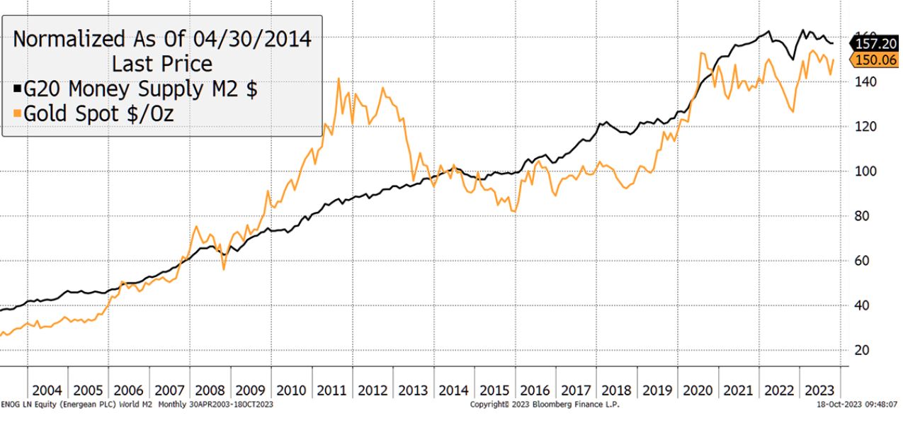 他表示:“因此,作为长期价格决定因素,黄金与全球货币供应的关系比通胀更为密切。”“从中期来看,实际利率仍将是最重要的影响因素,但我们正生活在转型时代。”