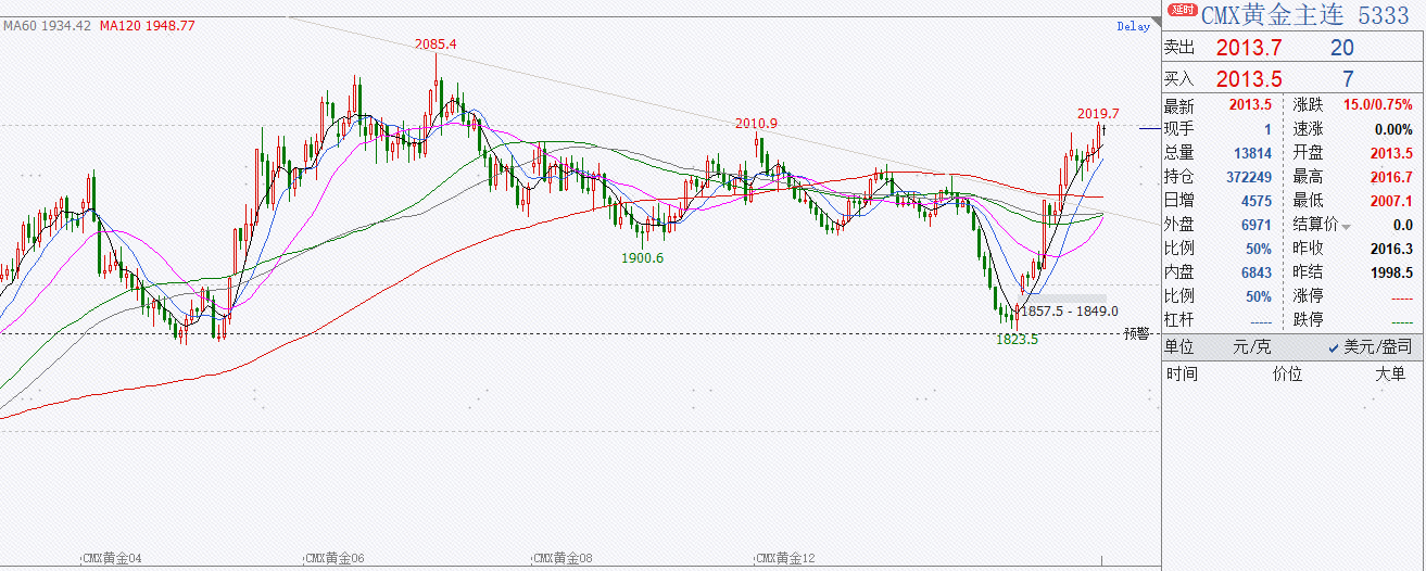 截止10月27日收盘,COMEX黄金12月合约亚市收盘于2016.3美元/盎司,涨幅0.95%,成交206932手,持仓367674手;COMEX白银12月合约亚市收盘于23.24美元/盎司,涨幅1.45%,成交45217手,持仓92761手。
