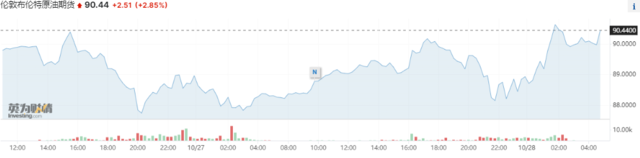 周五,由于担心冲突可能干扰原油供应,布伦特原油期货收涨2.85%,报每桶90.44美元。