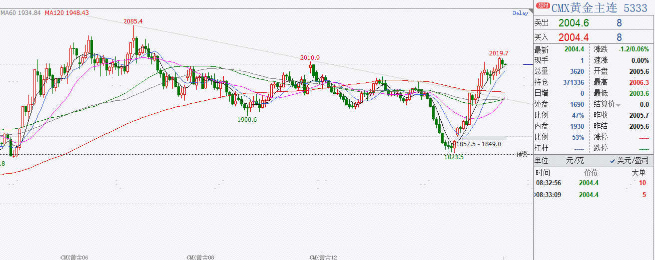 截止10月30日收盘,COMEX黄金12月合约亚市收盘于2005.7美元/盎司,涨幅0.36%,成交177834手,持仓371336手;COMEX白银12月合约亚市收盘于23.455美元/盎司,涨幅2.48%,成交57267手,持仓93523手。