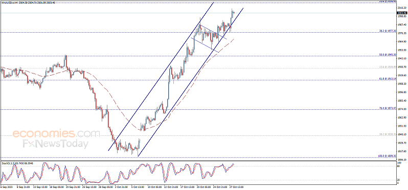 Economies.com预计,今日金价交投将于支撑位1990.00美元/盎司以及阻力位2020.00美元/盎司之间。
