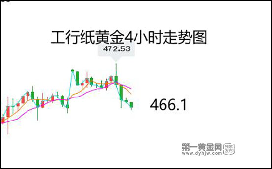 国内的纸黄金同步先扬后抑,晚间从472-473一线跳水回落,目前已跌至466元附近。