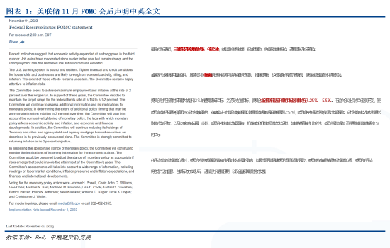 首先,复述此次美联储FOMC会后声明和鲍威尔讲话,寻找未来货币政策的指引。然后,复盘当日主要大类资产走势和市场利率预期的变化。最后,重点从美债收益率走高、美国经济、美国通胀、FOMC票委、风险因素四个方面分析,得出年内不再加息,但不排除明年继续加息的可能性,更为重要的是这种高利率恐将持续到明年年底。