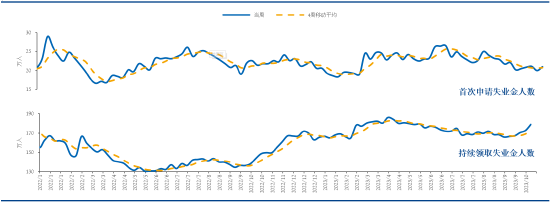 再配合美国最近的经济数据分析。1)美国Q3实际GDP环比折年率升至4.9%(预期4.3%,前值2.1%),季度反弹明显,主要拉动来自私人消费,表明美国经济的内生需求依然强劲。2)9月CPI、PCE、零售销售、通胀预期均出现不同程度的走差,表明通胀粘性较大、短期难以回落,抗击通胀的路阻且长。3)劳动力市场供需两旺,高频数据显示持续申请失业金有抬升,但仍在可控水平,预计本周五的10月非农数据不会大幅超出市场预期。