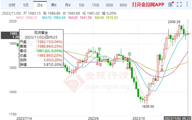 国际现货黄金本交易日盘内1980一线上方窄幅拉升,日内黄金价格保持窄幅走高趋势。北京时间10:26,黄金暂报1985.90。