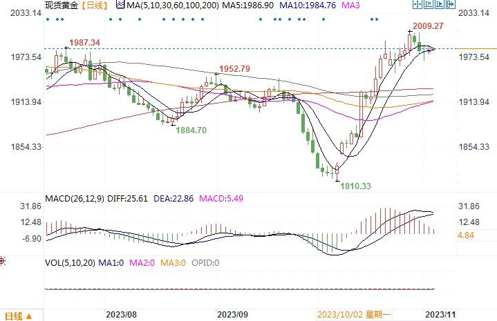 周四(11月21日),现货黄金在震荡中录得小幅微升的走势,收盘在1985.50美元/盎司水平。整体走势状况仍处在大涨之后的小幅震荡整理之中。