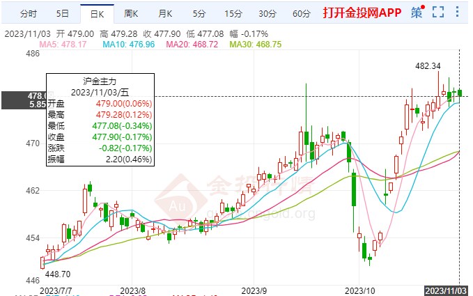 黄金期货本交易日盘内开启小幅慢跌行情,沪金日内478元/克一线附近窄幅慢跌走势,北京时间10:48,黄金暂报478.04元/克。