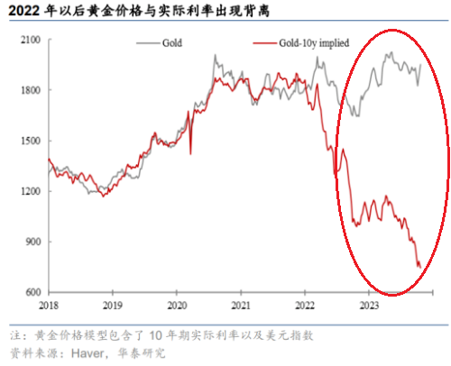 当然,如此高的实际利率恐怕也难以维系过久,如果美国2024年开始降息,这对黄金价格是否进一步形成趋势性的支持?