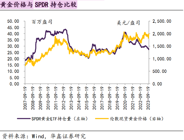 黄金可以被视为类似国债的长期无风险资产。但与国债不同的是,黄金是零息资产(没有利息),因此持有黄金的机会成本就是实际利率。所以通常实际利率上涨,黄金价格下跌,两者存在明显的负相关。