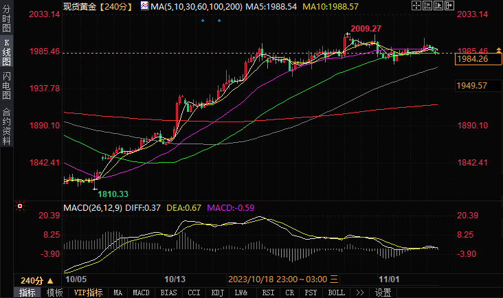 汇通财经APP讯——周一(11月6日)欧市早盘,现货黄金维持日内跌势,金价目前跌至1982美元/盎司附近,日内重挫约10美元。本文对日内黄金技术前景进行分析。
